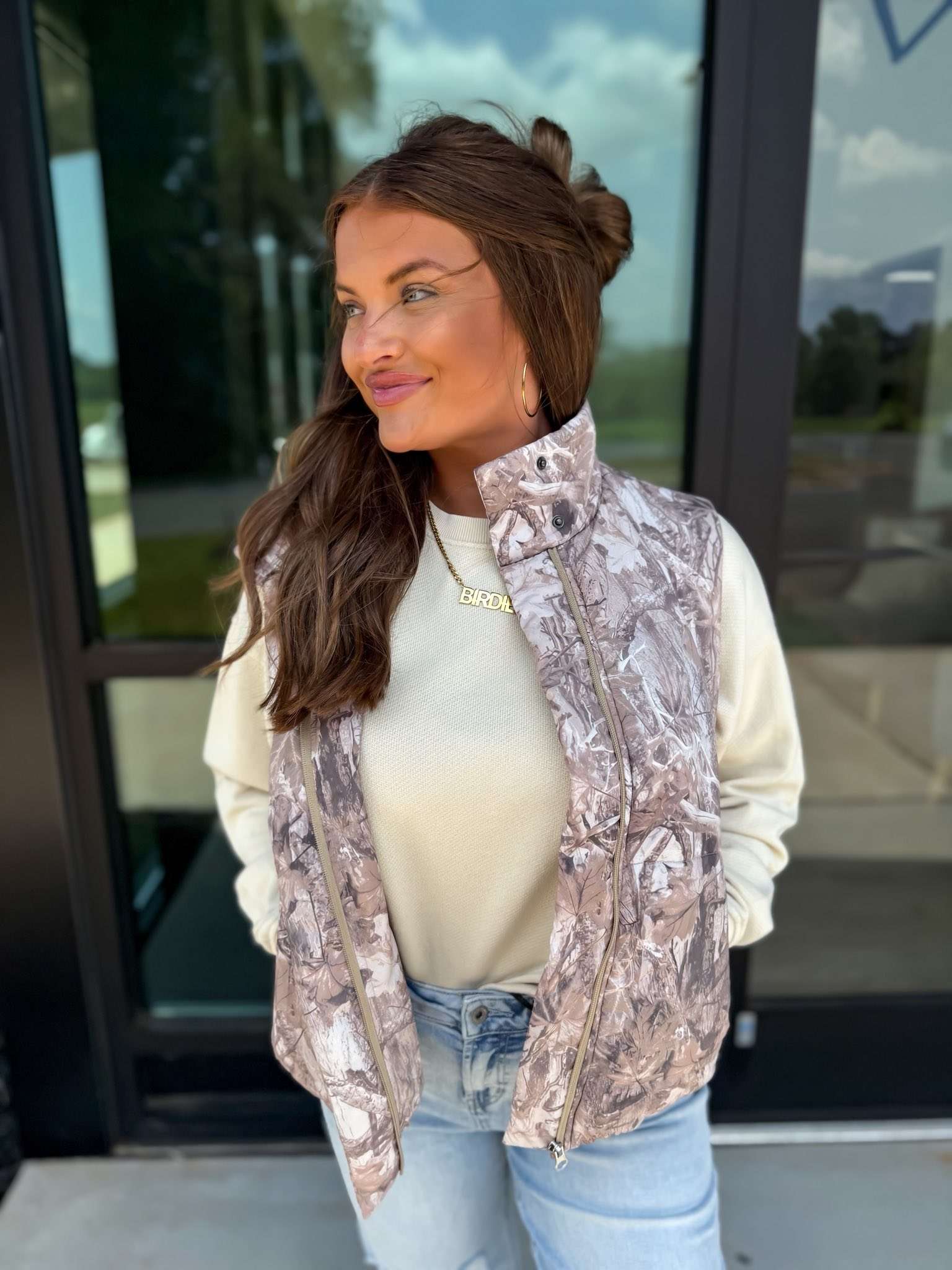 Layer up in style with our Camo Puffer Vest — the perfect cozy companion for crisp fall mornings and chilly winter days. Made from 100% polyester, this vest features ultra-soft, high-quality fabric that feels just as good as it looks. Snap-button closures add a classic touch and make it easy to throw on over your favorite sweaters or hoodies.