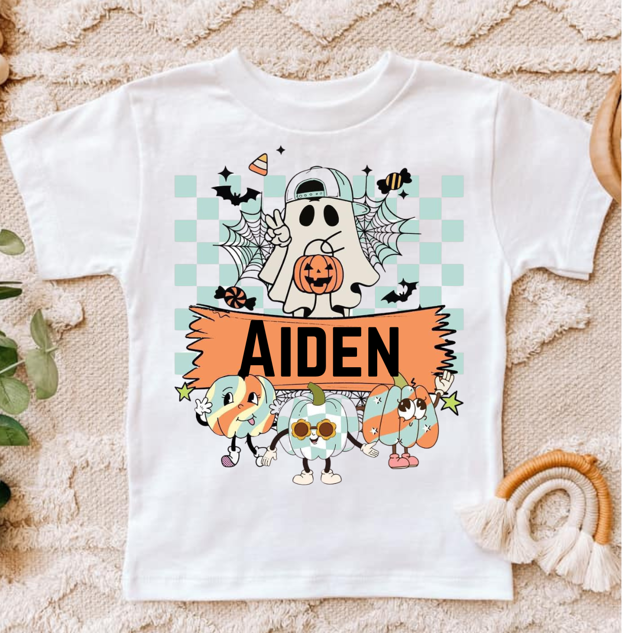 Get in the spooky spirit with our Ghost and Pumpkins shirt! This personalized Halloween shirt is perfect for youth, and is sure to be a hit at any Halloween party or trick-or-treating adventure. Embrace the creepy fun with this unique and playful design.
