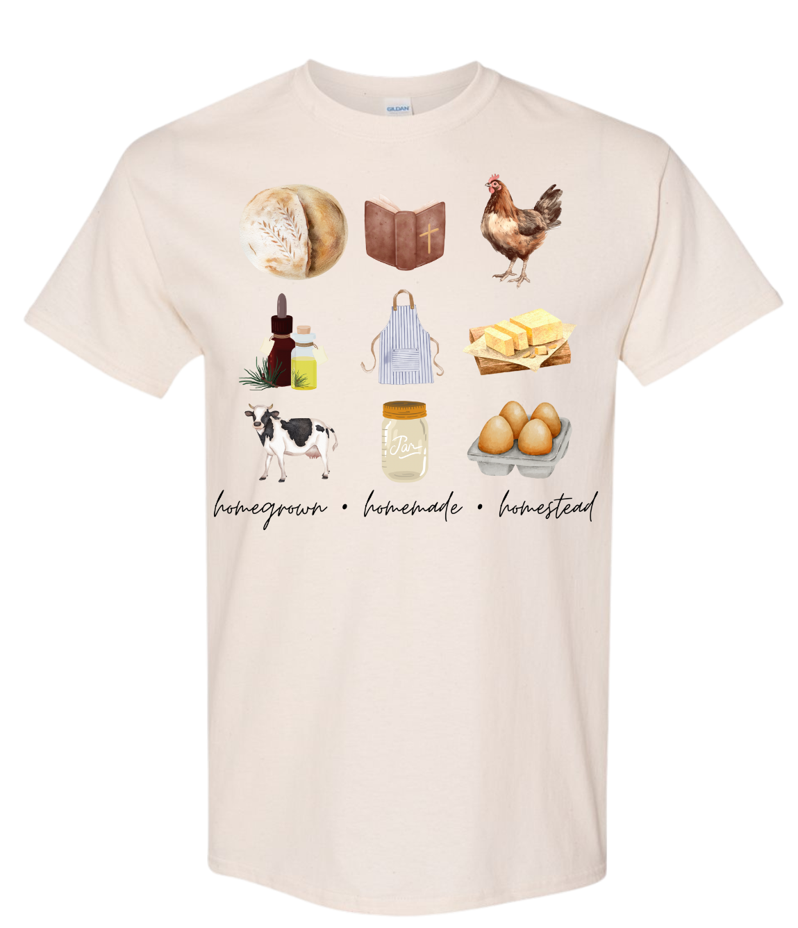 Get cozy and show some love for your homemade homestead with the Homegrown Homemade Homestead t-shirt. Made with comfort in mind, this quirky shirt is perfect for anyone who takes pride in their homegrown lifestyle. Stand out and make a statement with this fun and playful t-shirt. (No DIY skills required!)