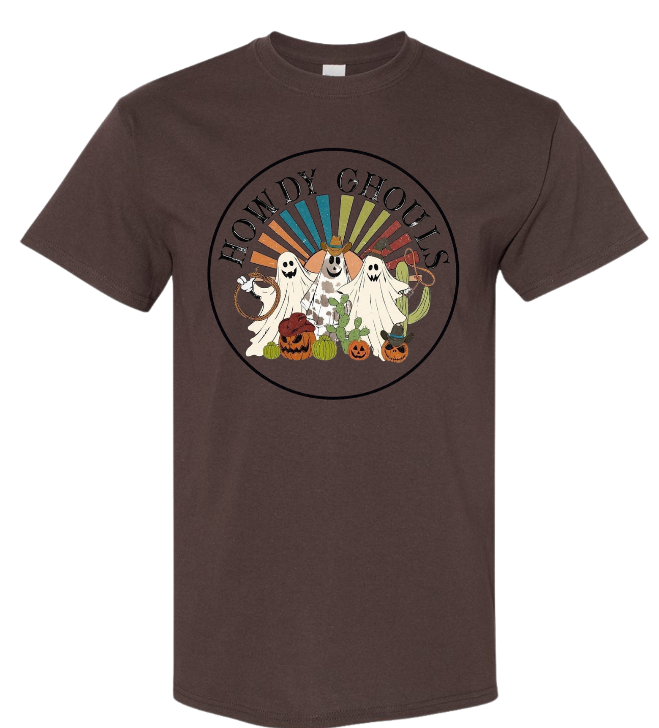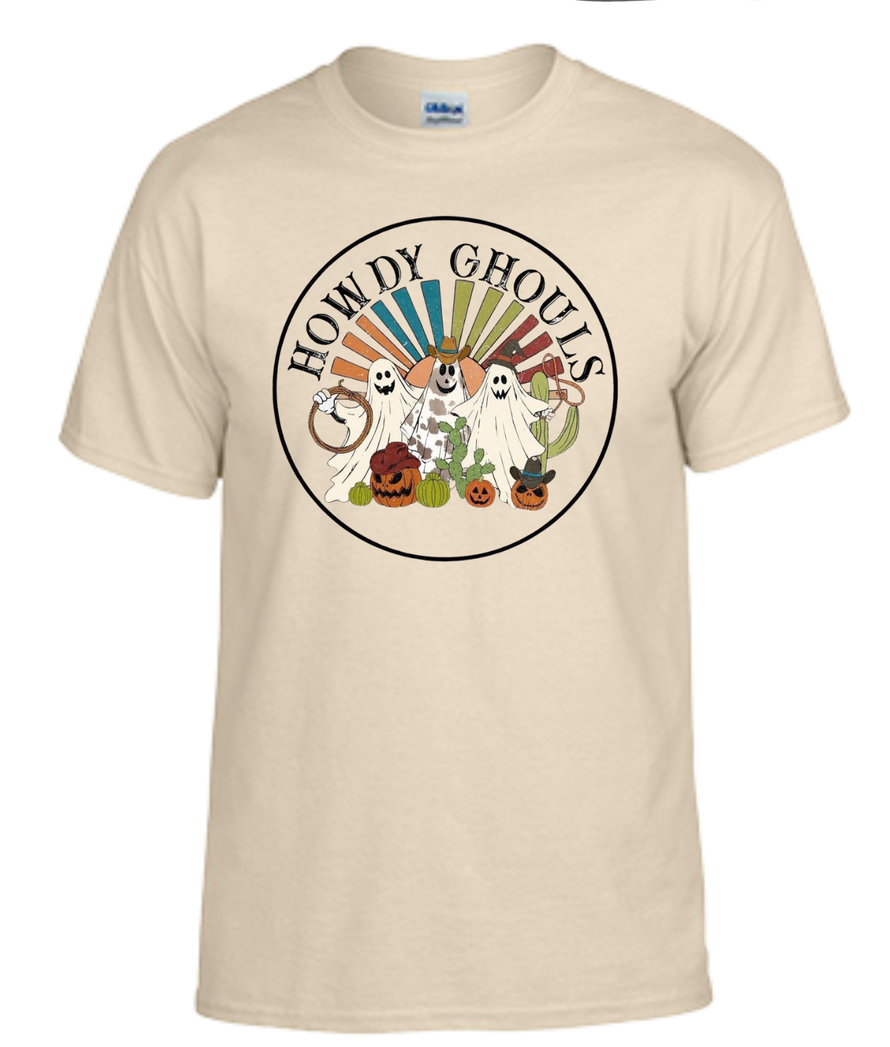 Introducing the Howdy Ghouls Shirt - a spooky and stylish addition to your wardrobe. Dress to impress even the scariest of creatures with this quirky and fun shirt. Perfect for Halloween or any other day you feel like getting into the spooky spirit.