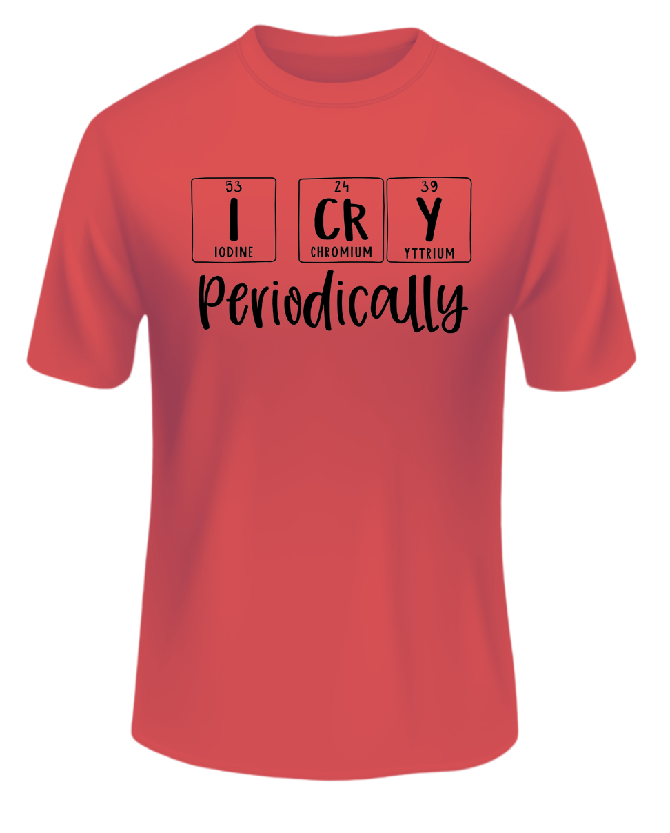 Keep your emotions in check with the I Cry Periodically T-Shirt. This quirky tee is perfect for those who don't take themselves too seriously. Show off your humorous side with this playful design. (Don't worry, the tears are just a joke!)