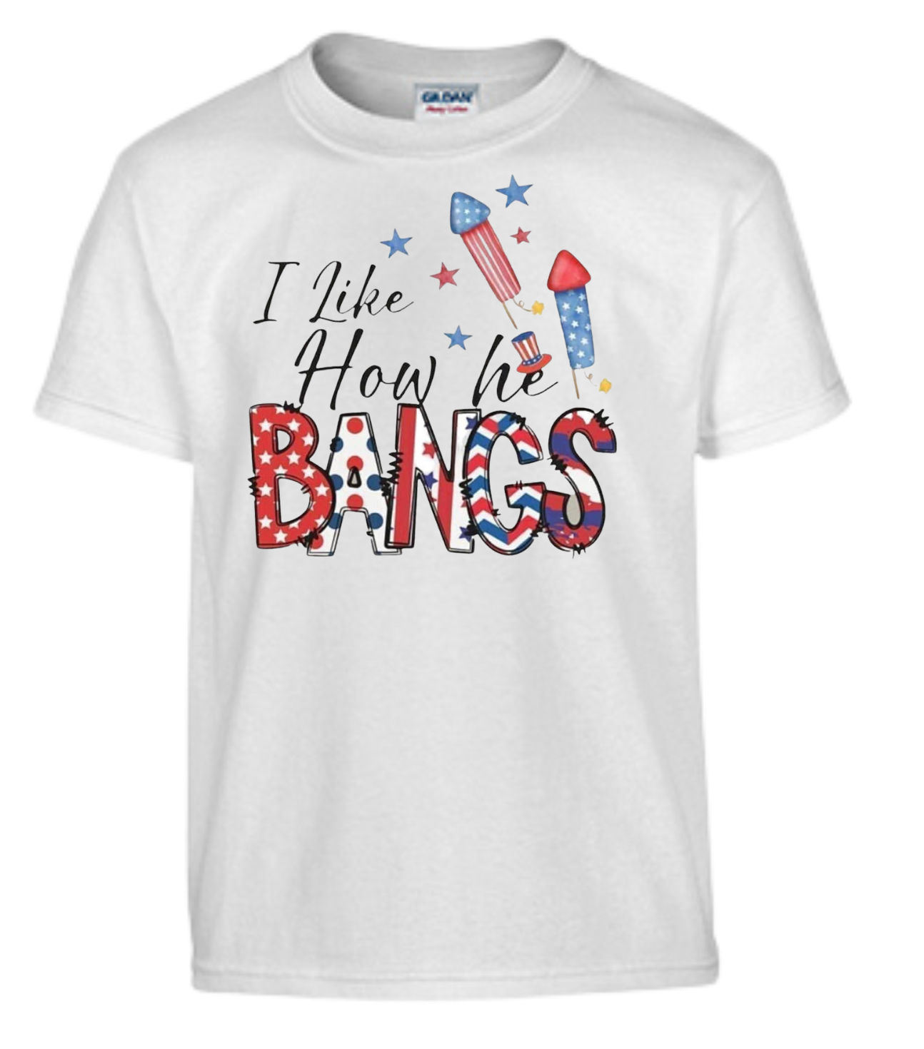 Show off your playful side with the quirky "I Like How He Bangs" t-shirt. Featuring a unique design, this shirt is perfect for those who appreciate humor and word play. Wear it to stand out from the crowd and add a touch of fun to your wardrobe.
