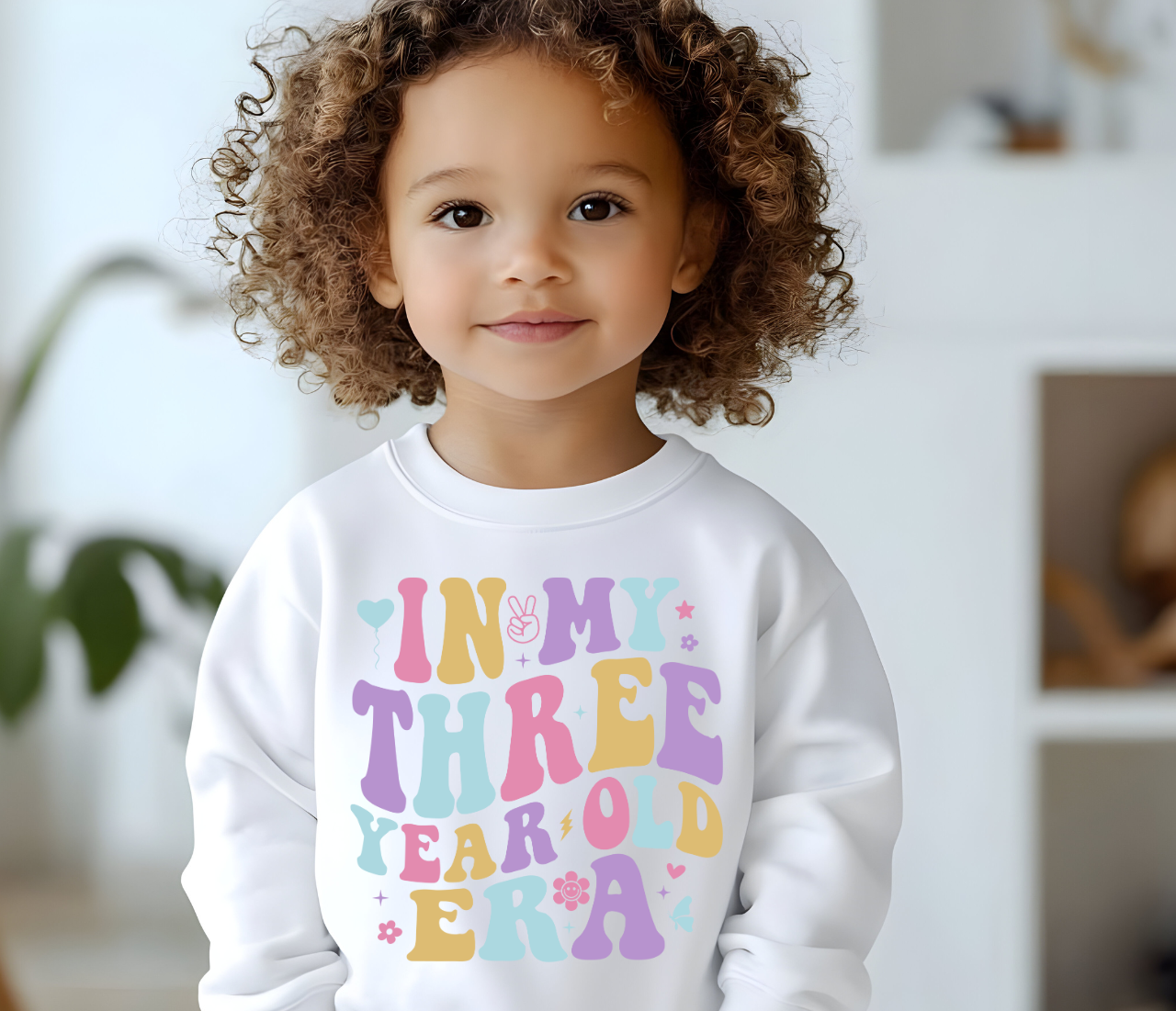 Get ready to embrace your inner child with our In My Three Year Old Era shirt. Made with high-quality fabric, this shirt is perfect for those who refuse to take life too seriously. Show off your playful side and make a statement with this quirky and unique design. (Warning: may cause fits of laughter and playful antics.)