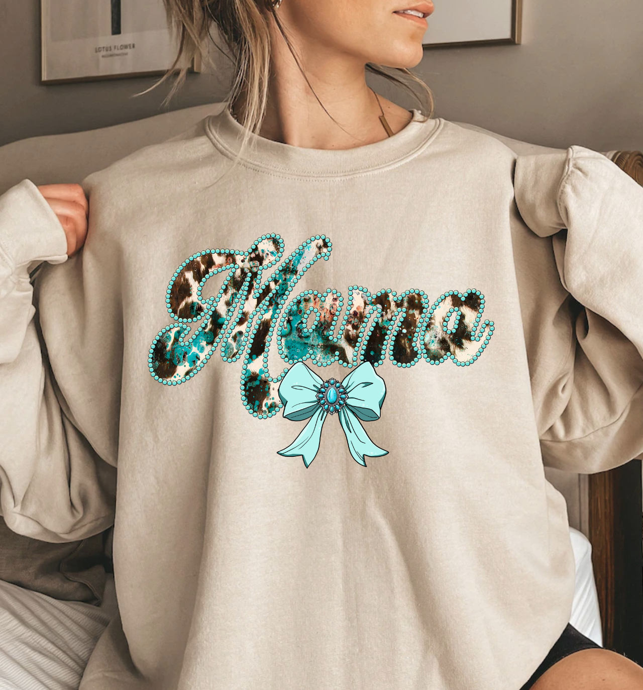 Get spotted in our Mama shirt, featuring a playful cow print and a bold turquoise bow (moo-ve over, boring t-shirts!). Perfect for any mama on the moo-ve. No bull, this shirt is udder-ly cute!