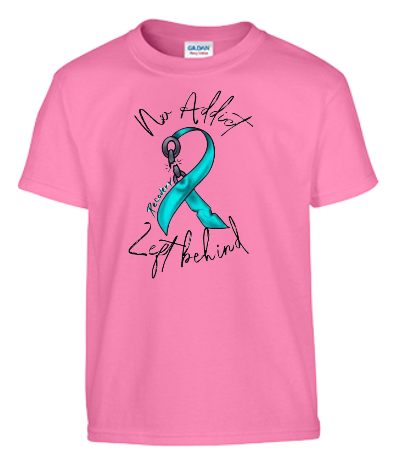 Rock this quirky No Addict Left Behind t-shirt and show your support for those in recovery! This unique shirt is sure to start conversations and spread awareness in a fun and playful way. Perfect for anyone who doesn't take themselves too seriously. (Isn't that all of us?!)