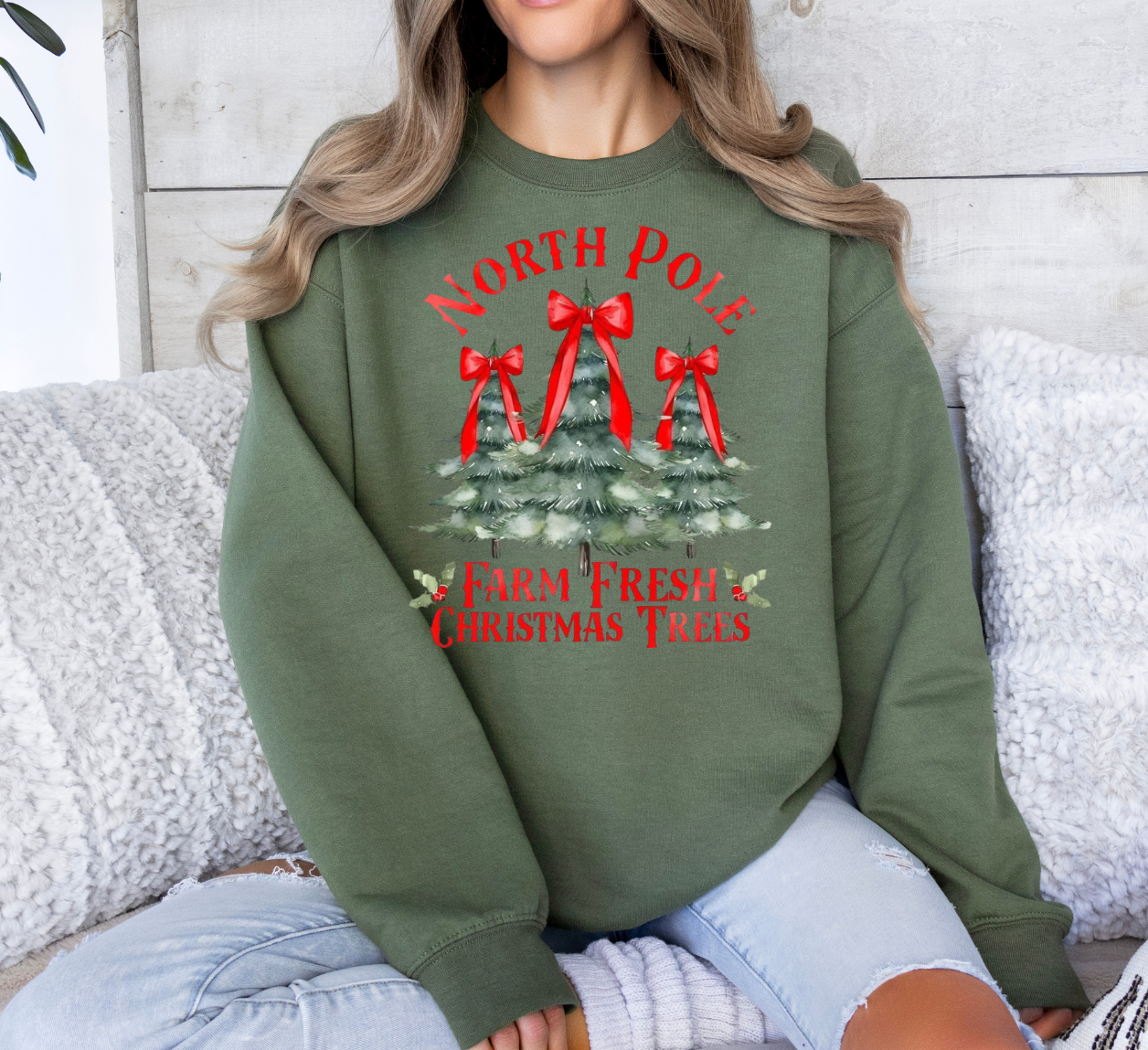 Rock this North Pole Farm Fresh Christmas Trees shirt and sleigh all day! The perfect addition to your festive wardrobe, this shirt guarantees a jolly good time. Tree-mendously stylish, it'll be your favorite holiday piece. Get ready to sleigh the season!