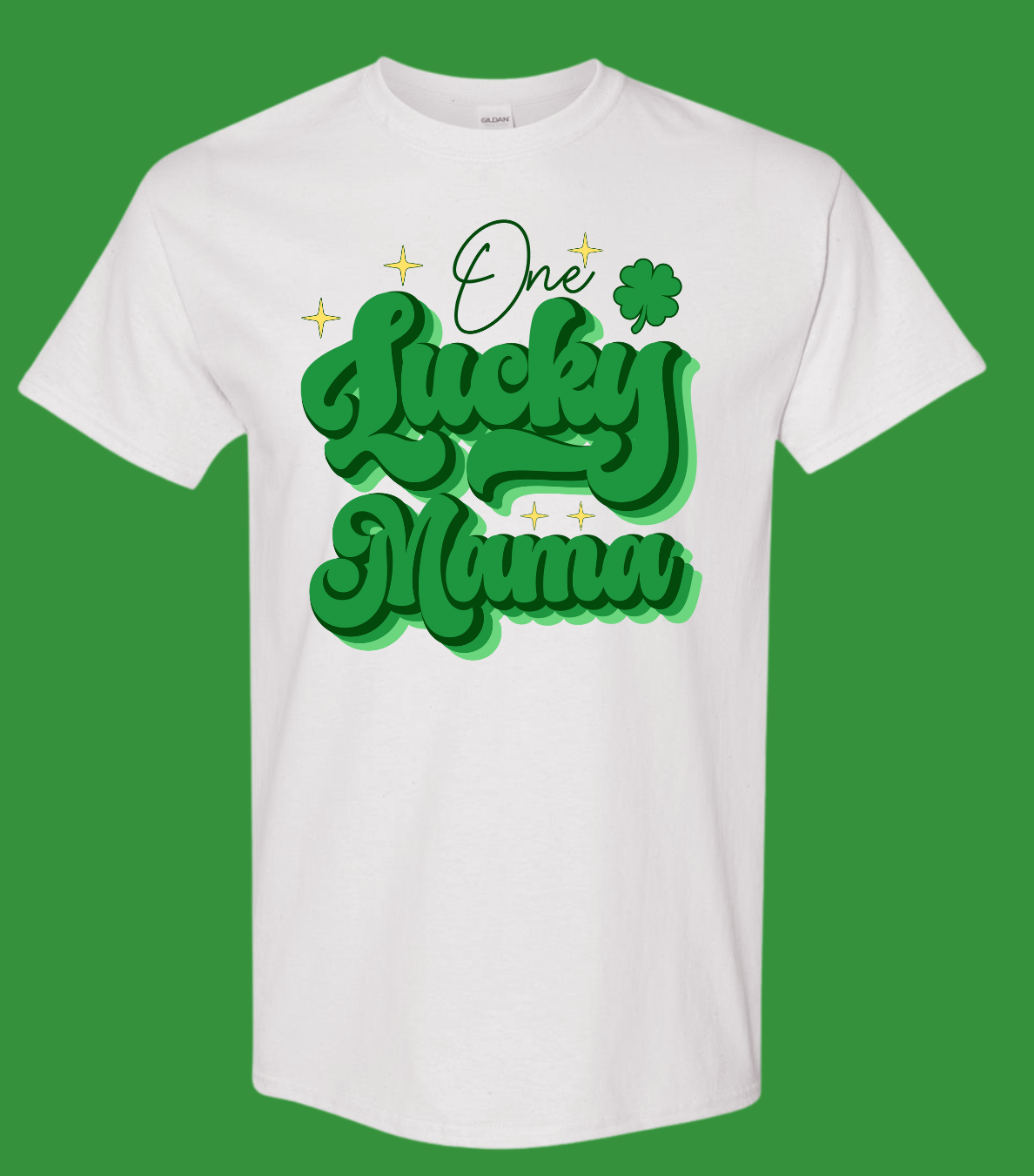 One Lucky Mama clover shirt. Good looks AND good luck, all in one! Be the envy of all your friends with this lucky shirt. Perfect for St. Patrick's Day or any day you want to feel extra lucky.
