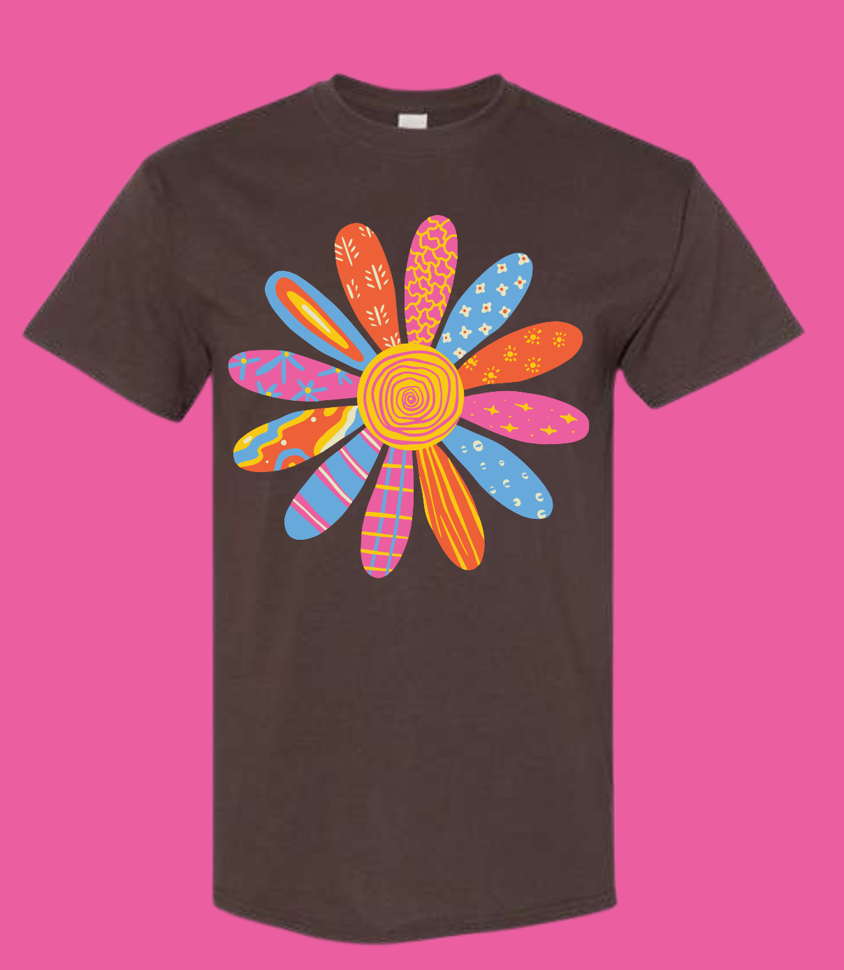 Bask in the sunny vibes of Patchwork Sunshine. This playful shirt is perfect for summer and spring, adding a pop of color to your wardrobe. Stay stylish and cool in this unique piece.