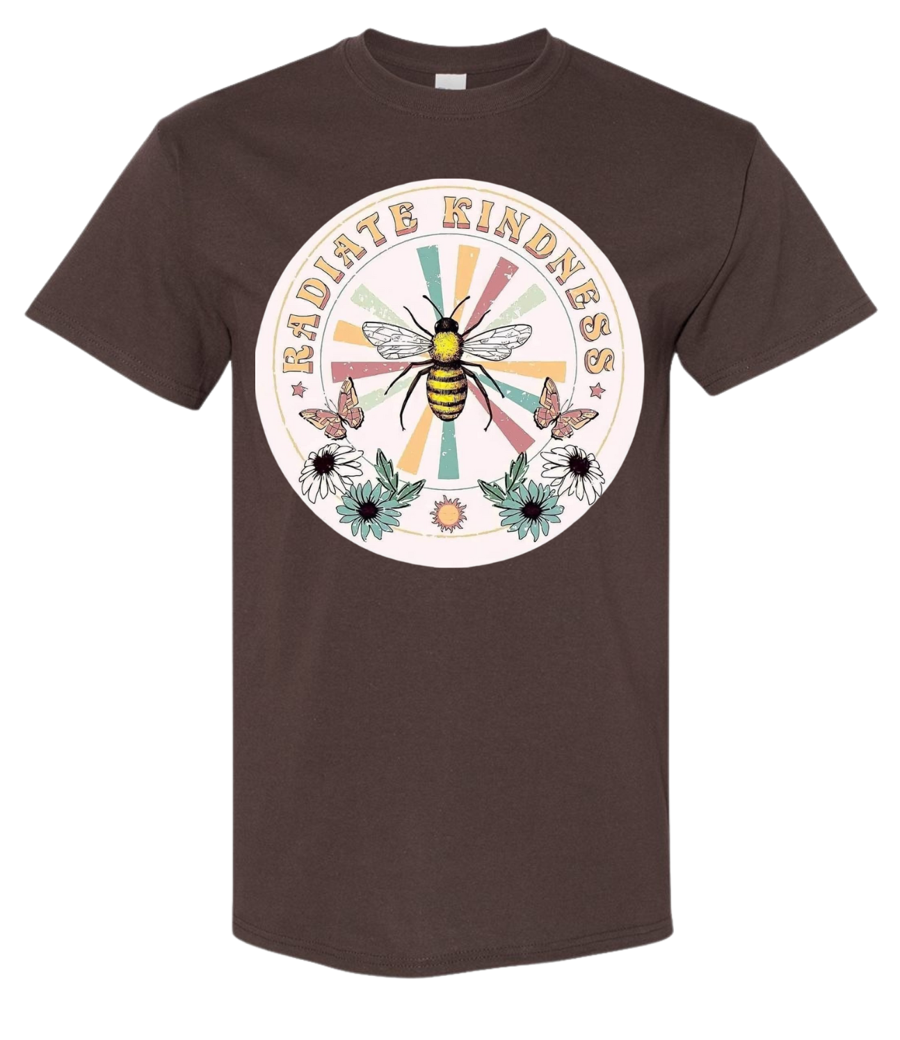 Spread sunshine and positivity everywhere you go with our Radiate Kindness t-shirt! This quirky tee is not only stylish and comfortable, but it also serves as a reminder to be kind and spread love to those around you. (Plus, it looks great with any outfit!)