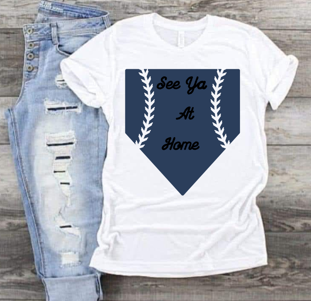 Score a home run with the See You At Home T-Shirt! Perfect for baseball, softball, or tball, this shirt will have you hitting all the bases in style. Don't miss out on this quirky and fun addition to your wardrobe. (No baseball pun intended.)