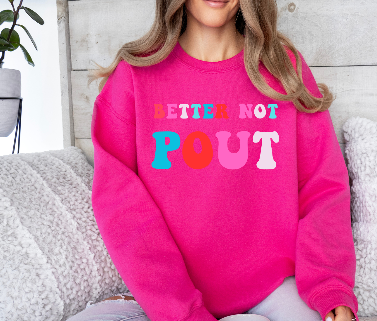 Don't get caught on the naughty list- wear the Better Not Pout shirt, guaranteed to keep the Christmas spirit alive. Embrace your inner Santa and spread the cheer! (No judgement if you're on the naughty list).