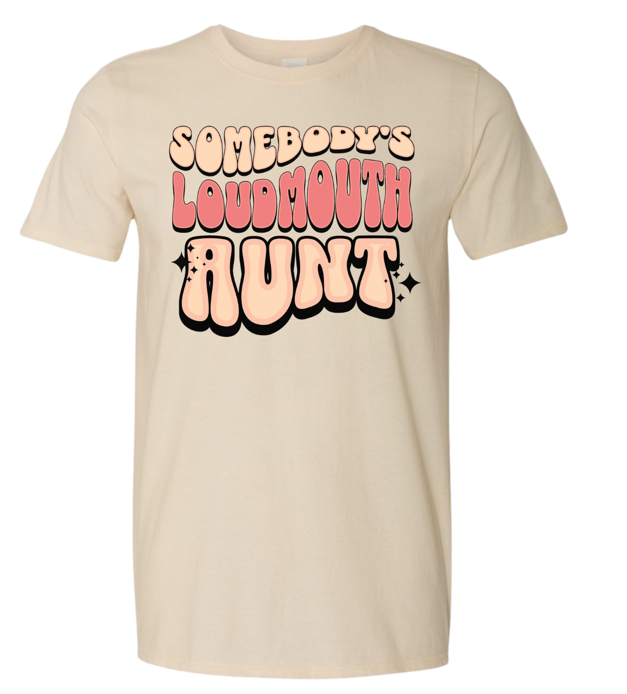 Wrap yourself in the comical comfort of our Somebody's Loud Mouth Aunt T-Shirt. Perfect for family gatherings or as a tongue-in-cheek gift, this tee features a playful design that's sure to make a statement. Embrace your loud and proud aunt status with this quirky and fun t-shirt.