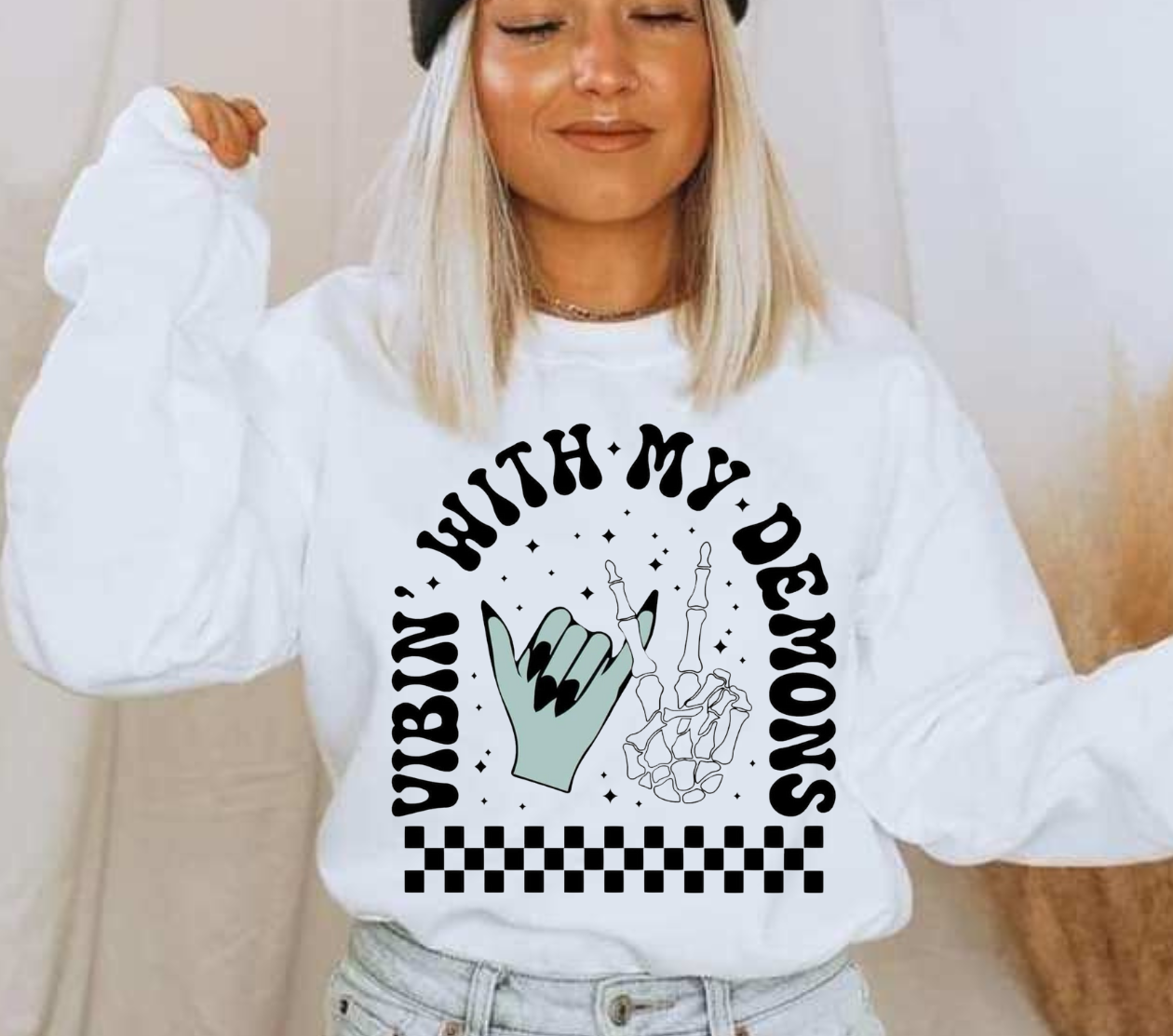 Unleash your inner demons with the Vibin' With My Demons shirt. This shirt is perfect for those who don't take themselves too seriously, with its playful design and quirky language. Show off your unique style and let your demons run wild! (No exclamation points needed)