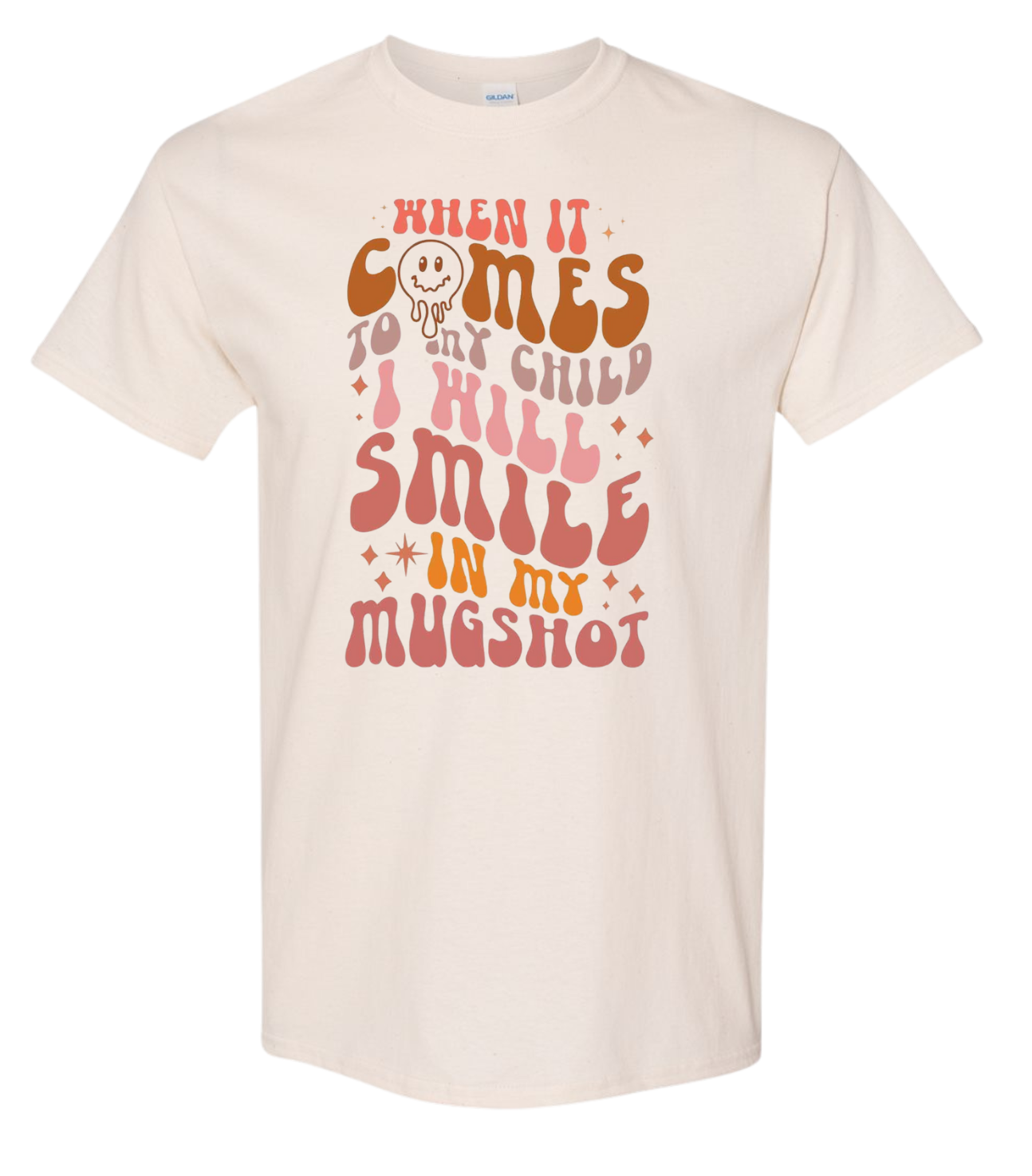 Be a #1 parent in style with our When It Comes To My Kids I will Smile In My Mugshot t-shirt. Show off your sense of humor while also being a loving and protective parent. Perfect for casual wear or a conversation starter at the playground. No mugshot required!