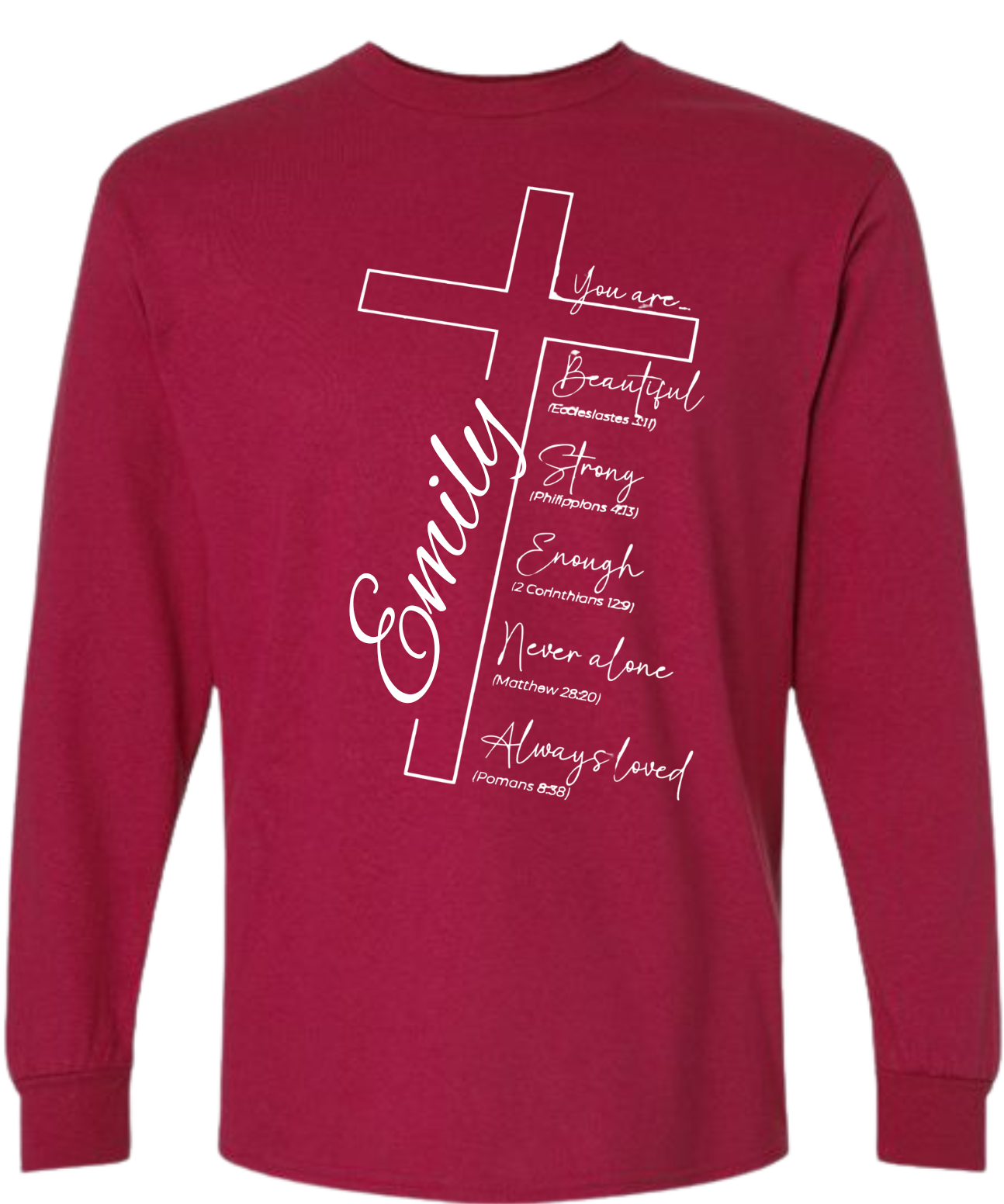 Say goodbye to boring, generic clothing and hello to You Are! This shirt is more than just fabric - it's a wearable reminder of your strength and inspiration. Featuring unique Bible verses, it's tailored just for you. Express your personal style and beliefs with this quirky and fun addition to your wardrobe.