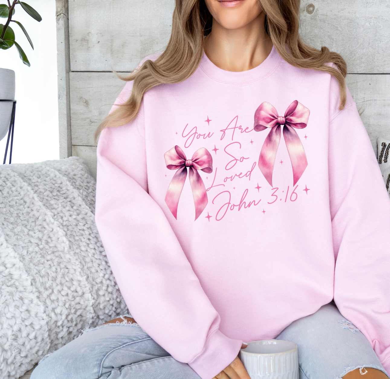Show your love and faith with this "You Are So Loved" shirt, featuring John 3:16. Spread a positive message while staying stylish and comfortable. Perfect for everyday wear or as a meaningful gift for loved ones.